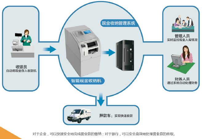 由銀行根據(jù)企業(yè)現(xiàn)金營(yíng)業(yè)金額,在企業(yè)收銀室或財(cái)務(wù)室,布設(shè){}“高速現(xiàn)金收納機(jī)”,并建立集中的現(xiàn)金收納管理系統(tǒng),幫助企業(yè)實(shí)現(xiàn)快速安全的營(yíng)業(yè)款繳納,并通過(guò)系統(tǒng)提供及時(shí)的入賬服務(wù)、遠(yuǎn)程的監(jiān)管服務(wù)等,在為企業(yè)提供安全的高效現(xiàn)金收款服務(wù),同時(shí),銀行可根據(jù)設(shè)備內(nèi)的現(xiàn)金量靈活定制上門收款時(shí)間及頻次,合理利用押款車資源,降低押款成本。